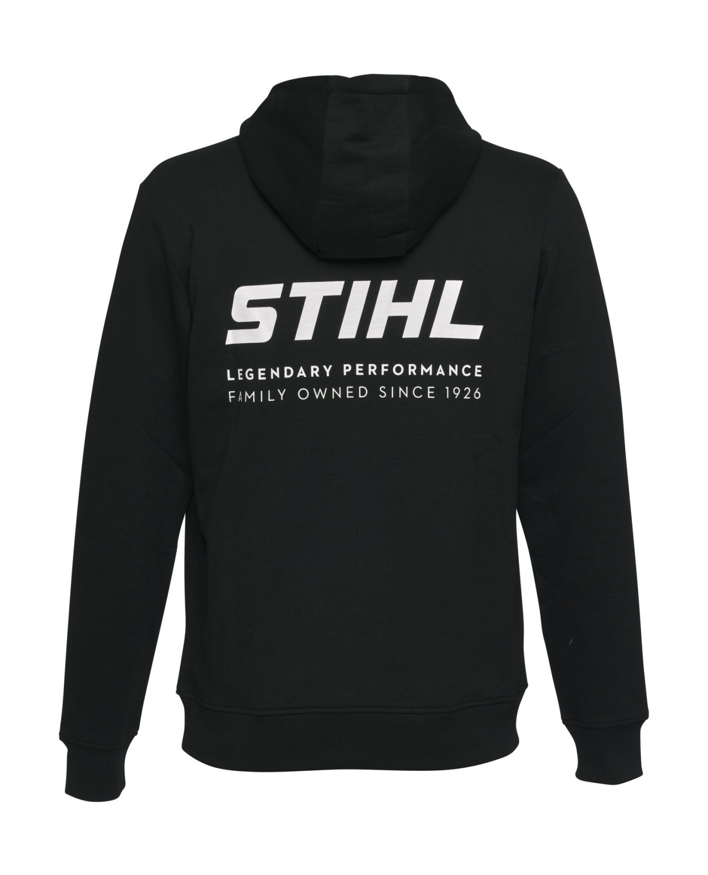 Černá mikina s kapucí, kterou by měl mít ve svém šatníku každý fanoušek značky STIHL! Měkká tkanina z bavlněné směsi je z vnitřní strany počesaná pro pohodlnější nošení. Cenné věci lze bezpečně uložit do další boční kapsy na zip v břišní kapse. Na zadní straně je velké logo STIHL s nápisem LEGENDARY PERFORMANCE v bílé barvě.