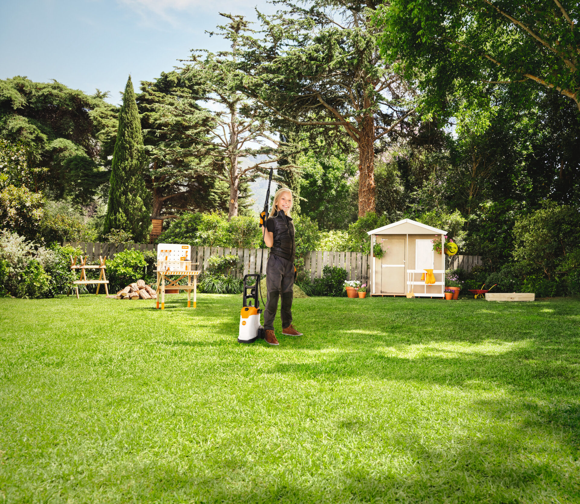 Ne vždy je snadné děti na zahradě zabavit tak, abyste měli sami čas i na svou práci nebo klidný odpočinek, ale pokud jim pořídíte dětské stroje STIHL, budou na zahradě moci pracovat stejně, jako vy – nebo skoro. STIHL vyrábí nejen motorové stroje s vysokými výkony, ale i dětské modely, které napodobují plnohodnotné stroje. Třeba tlakový čistič, který opravdu stříká vodu a to až 5 minut na jedno naplnění nádobky. Tlakový čistič pro děti je napájen z akumulátoru, který je součástí balení společně s kabelem pro jeho nabití. V nabídce najdete i více modelů strojů a ochranného vybavení nebo hraček. Nejoblíbenějším trhákem už 2 roky za sebou je u nás model motorové pily s točícím se gumovým řetězem.