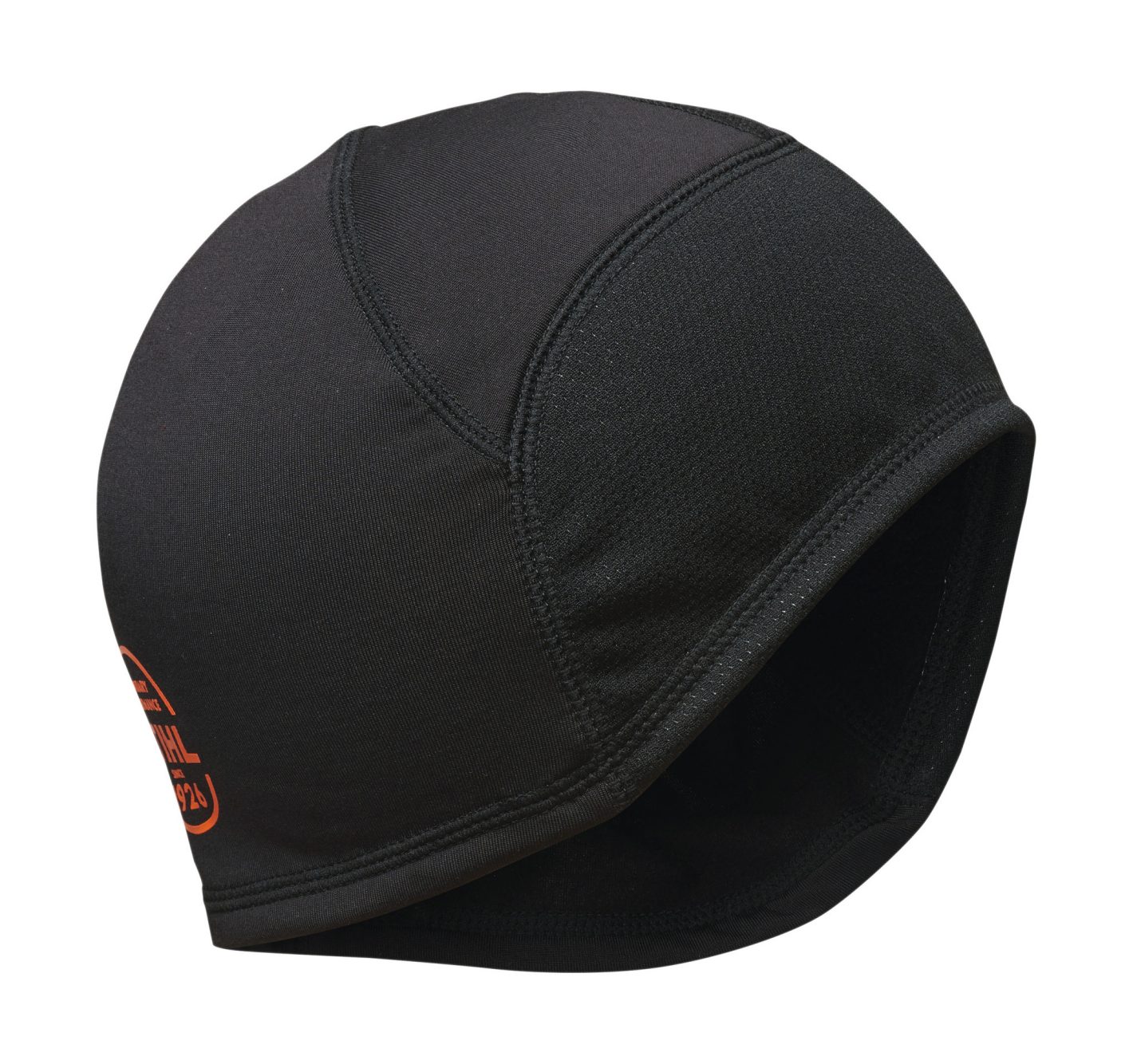 Čepice STIHL s oranžovým gumovým potiskem loga a větruvzdornou částí na čele. Ideální jako spodní čepice pod pracovní nebo cyklistické helmy nebo jako běžecká čepice.