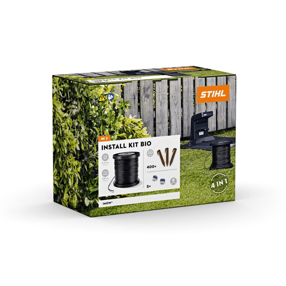 S instalační sadou STIHL KIT 3 BIO iMOW® vytvoříte základ pro úspěšný provoz robotické sekačky STIHL iMOW®. Pomocí sady můžete vymezit požadovanou pracovní plochu pro sečení. Instalační sada STIHL KIT 3 BIO pro sekačku iMOW® obsahuje 300 m obvodového drátu STIHL ARB 151 (Ø 3,4 mm) pro vymezení pracovní plochy, 350 upevňovacích kolíků STIHL iMOW® BIO pro ukotvení drátu a 350 upevňovacích kolíků STIHL iMOW® BIO350 upevňovacích kolíků STIHL iMOW® BIO STIHL ADV 010 pro spojení několika segmentů drátu i kabelové značky. Tuto sadu můžete instalovat společně s robotickou sekačkou STIHL iMOW®: