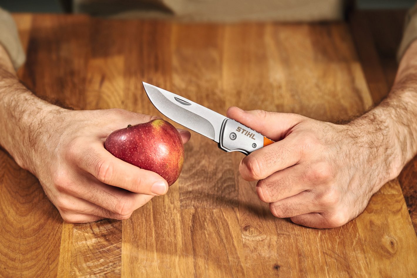 Tento kapesní nůž vyrobený z prvotřídní oceli lze použít pro širokou škálu úkolů. Rukojeť zavíracího nože s uzamykatelnou čepelí je vyrobena z matné nerezové oceli a laminátu ze skelných vláken v oranžové barvě a s velkou výdrží – je tedy ideální pro outdoorová dobrodružství.