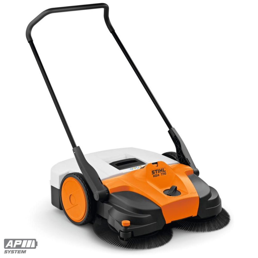 Akumulátorový zametací stroj STIHL KGA 770 je ideální pro profesionály a náročné soukromé uživatele, kteří chtějí uklízet velké plochy v interiéru i exteriéru. Díky zametacímu systému STIHL MultiClean Plus a pracovní šířce 77 cm lze s tímto akumulátorovým zametacím strojem účinně odstraňovat hrubé nečistoty na plochách ve výrobních halách a na zámkové dlažbě nebo dlažebních kostkách. Talířové kartáče a přídavný zametací válec jsou napájeny z akumulátoru ze systému STIHL AP. Díky tomu zametací stroj KGA 770 pracuje vždy tiše při optimální rychlosti a snadno se ovládá. Rotační zametací válce pracují s nastavenou rychlostí i v klidovém stavu. Jemný prach je spolehlivě zachycen a neuniká do okolí díky těsnicí liště, která obepíná zametací válec, ve spojení se vzduchovým filtrem.