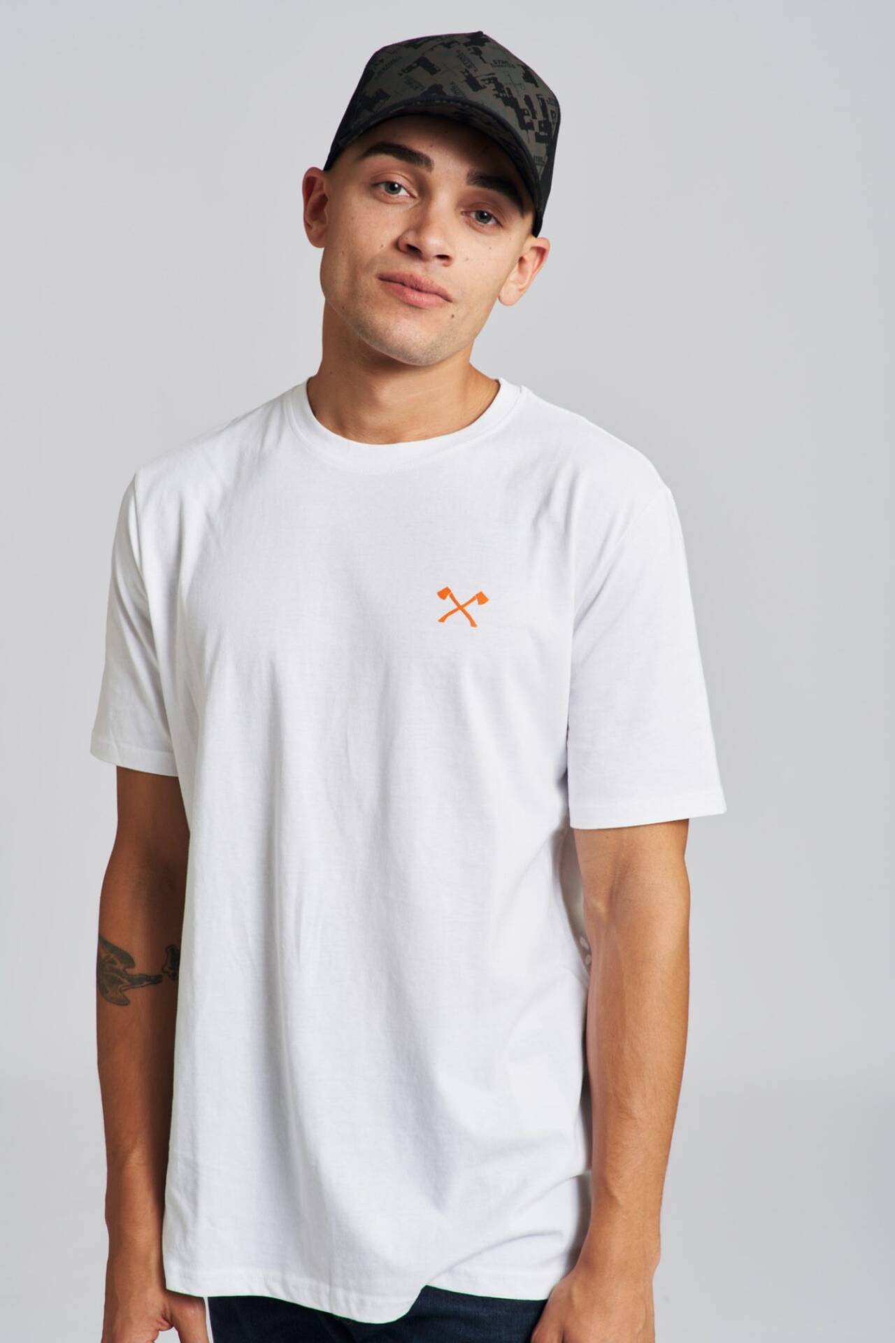 Kšiltovka s celoplošným potiskem malých log TIMBERSPORTS®, zkřížených seker a stylizovaných znaků dřevěné třísky na přední straně. Nastavitelná.