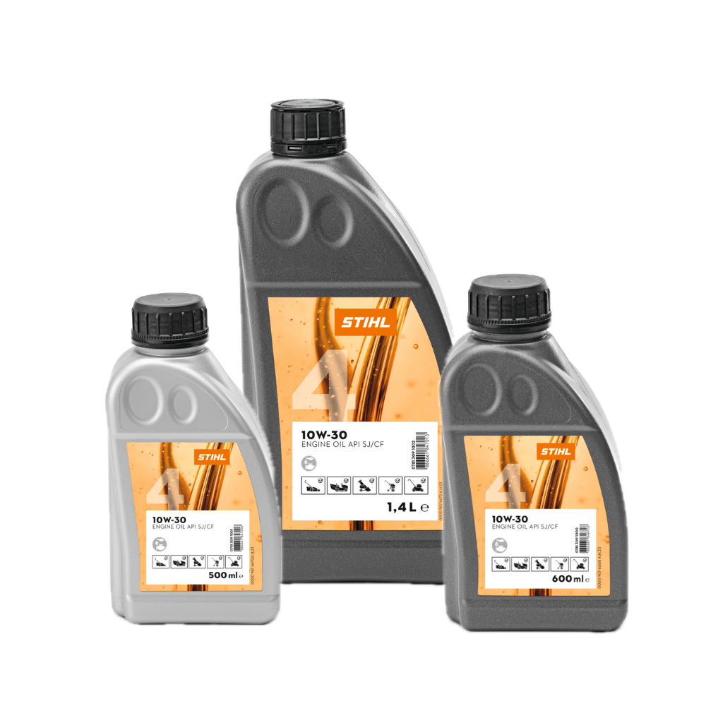 Vysoce kvalitní motorový olej STIHL 10 W-30 je optimalizován pro celoroční použití.