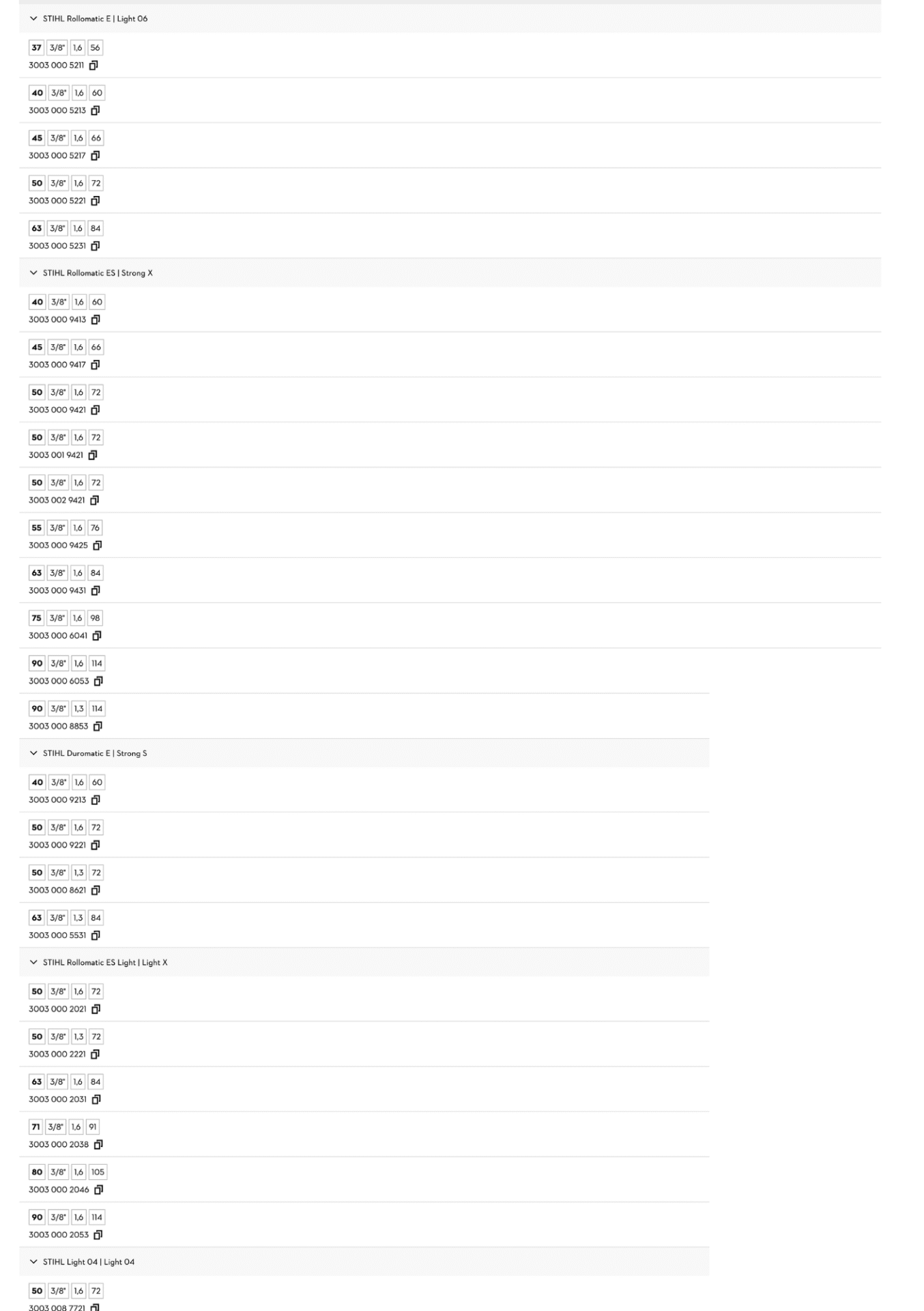 Seznam kompatibilních vodících lišt a parametrů pro výběr řetězu