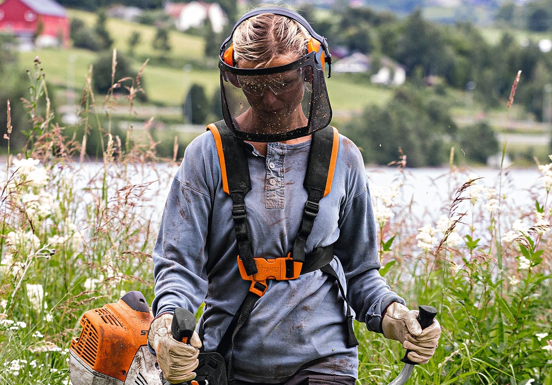 Při práci s křovinořezy, vyžínači, foukači, postřikovači a rozbrušovačkami je nutné doplnit ochranné brýle (EN 166).