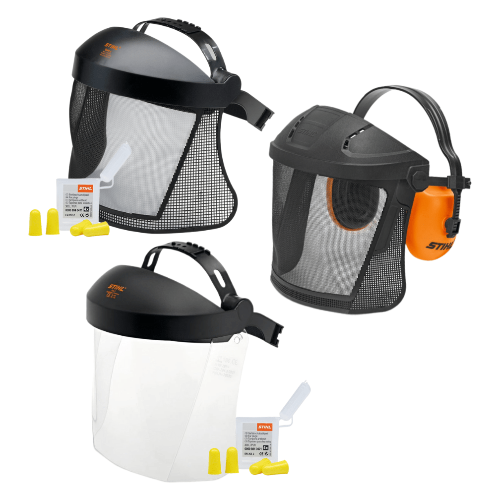 | Hledí / štít | Plastové hledí s UV 100 % ochranou – ideální na přímé slunce | Krátký obličejový štít z nylonové mřížky | Výklopná nylonová mřížka (PA) pro flexibilní práci |