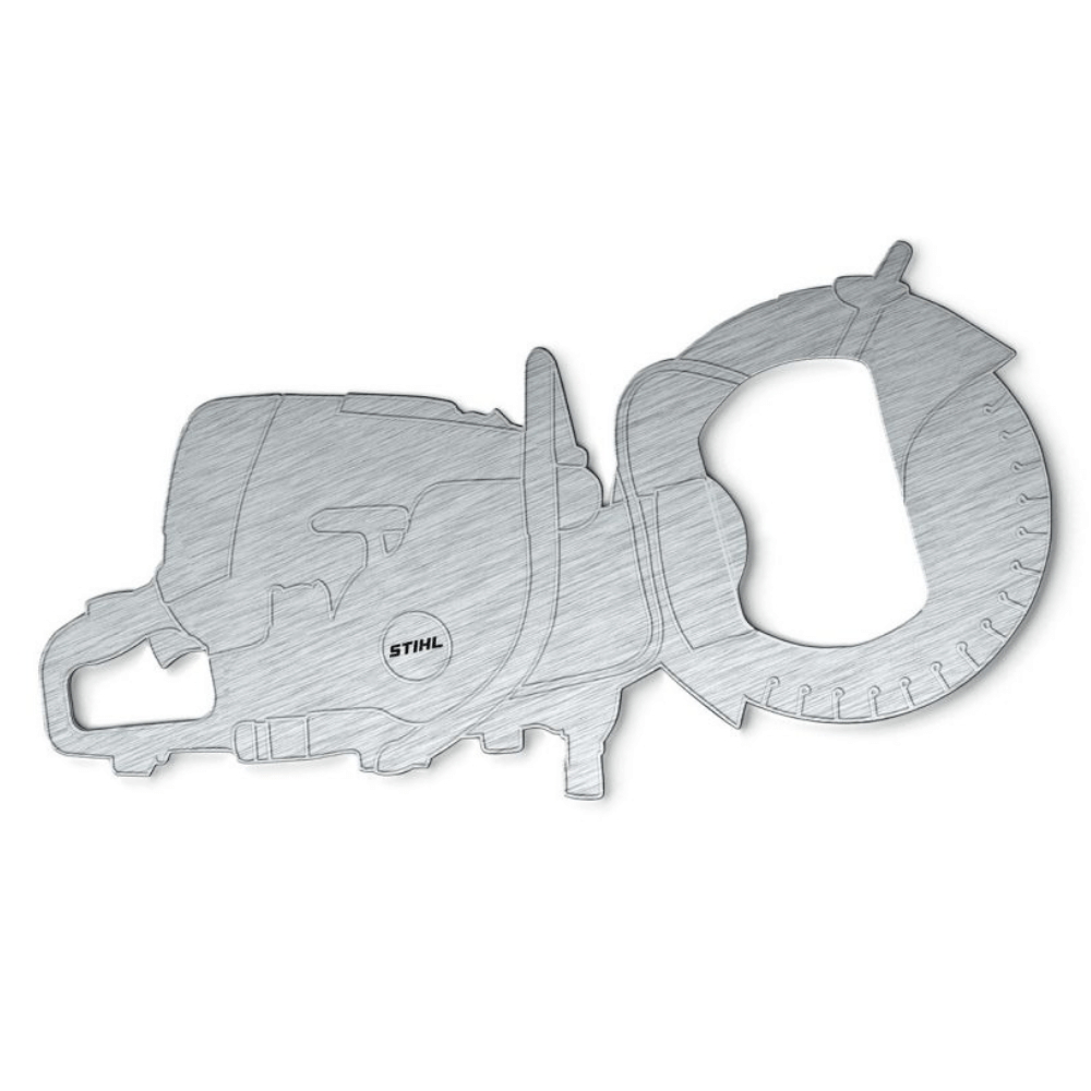 STIHL otvírák je vhodný do každé kuchyňské výbavy. Lichotivý ruční a pevný otvírák na láhve ve tvaru brusky vyrobené z kartáčovaného kovu přibližně 90 x 50 x 2 mm.