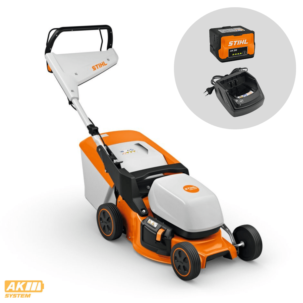 Akumulátorová sekačka RMA 243.3 v sadě s akumulátorem AK 20 a standardní nabíječkou AL 101: efektivní práce na menších trávnících
