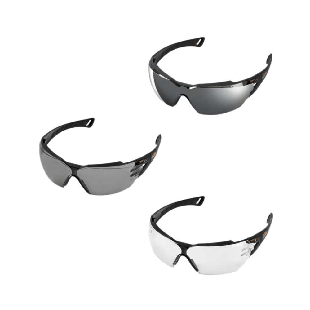 Ochranné brýle STIHL TIMBERSPORTS® Edition se 100% UV ochranou jsou k dispozici ve 3 různých barvách skel: