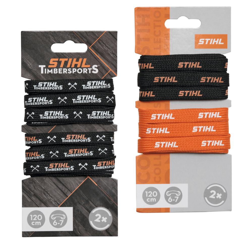Oživte své své boty originálními tkaničkami s potiskem loga STIHL nebo STIHL TIMBERSPORTS. Sada obsahuje 2 páry tkaniček dlouhých 120 cm ze 100% polyesteru. K dispozi je klasická varianta STIHL a pro fanoušky také řada STIHL TIMBERSPORTS.